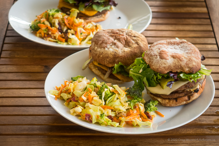 Get a plate and serve up some vegan coleslaw!Vegan coleslaw and plant-based burgers. Let’s eat!