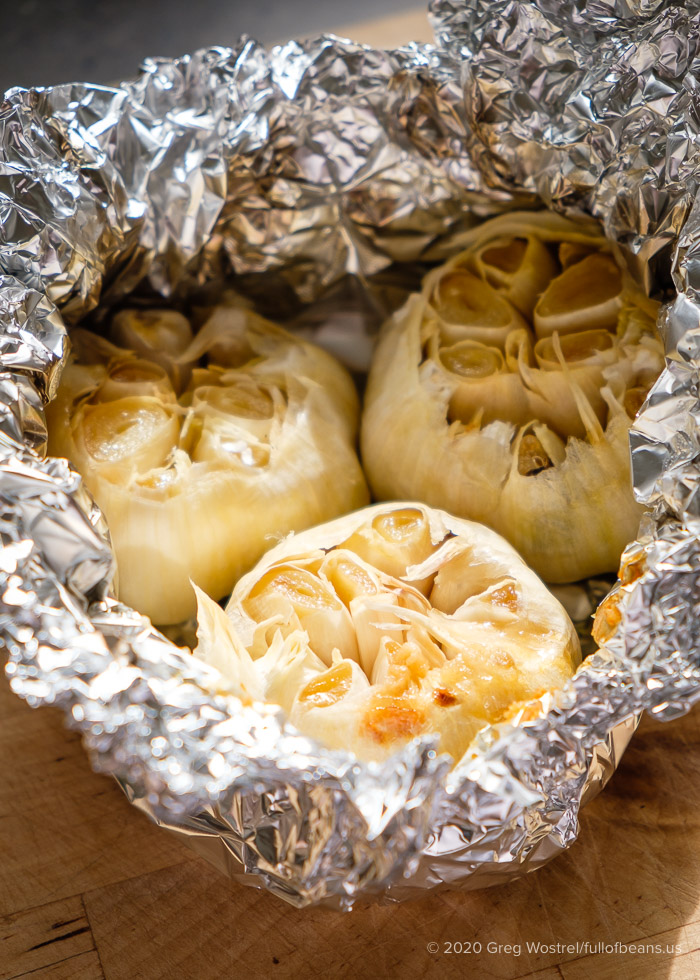 A note about aluminum foil. I have read enough studies and opinions to give me a measure of caution with aluminum exposure. I avoid having the foil be in direct contact with the food I will consume. The garlic is protected by layers of skin. This is why I leave some room above the exposed cloves. I figure it is an easy enough way to avoid a potential health risk and I want to share that with you for whatever it is worth to you. If you are reading this, I consider you a guest at my table. <3