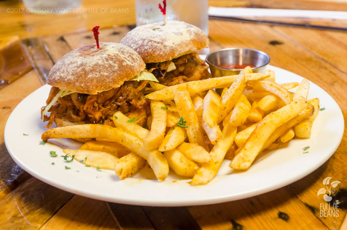 Greg ordered the BBQ Pulled Jackfruit sliders with a side of seasoned french fries. Neither of us have tried jackfruit before, and rarely go for anything BBQ. But we’ve read and seen a lot of recipes for the jackfruit version of BBQ pulled pork, so we were curious. It was delish!